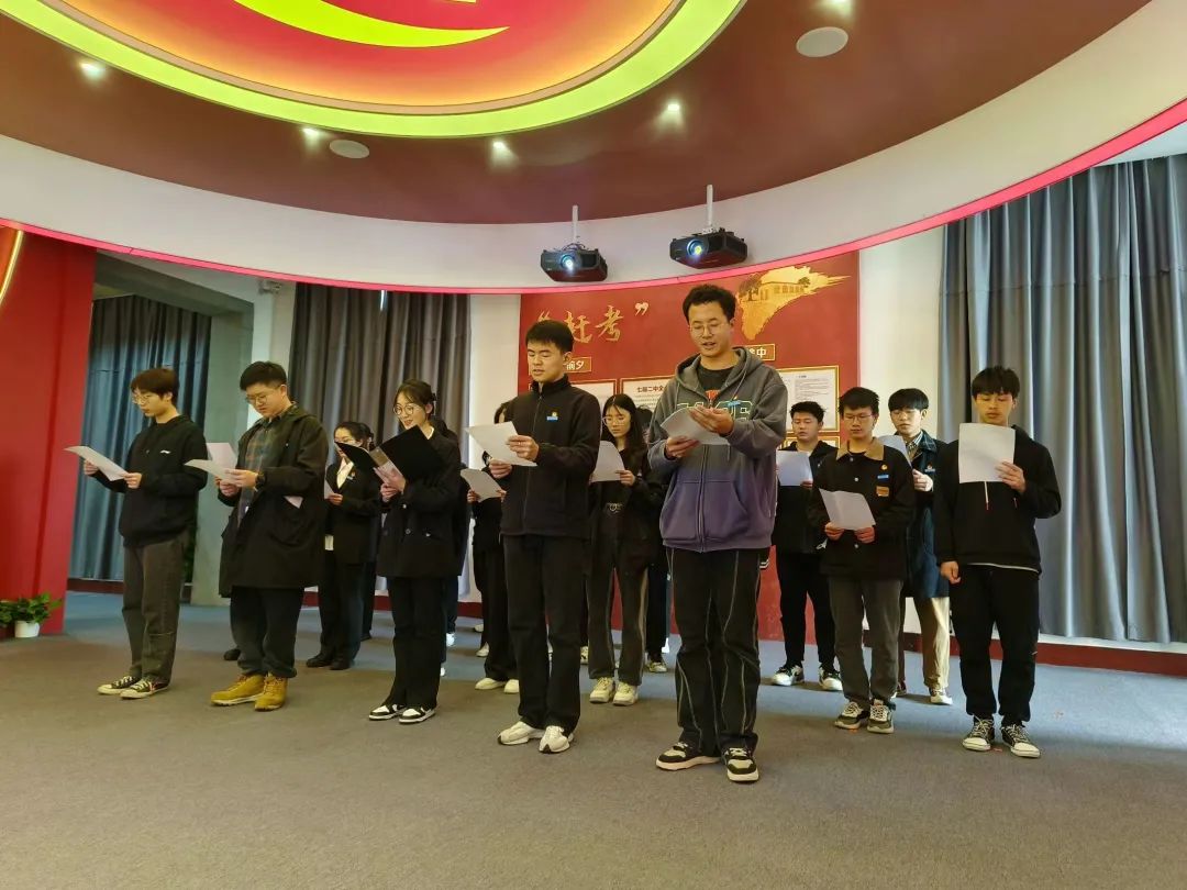 怀着无比自豪的心情,校级团学组织学生代表高举右手庄严宣誓,重温入团誓词:“我志愿加入中国共产主义青年团,坚决拥护中国共产党的领导,遵守团的章程,执行团的决议,履行团员义务,严守团的纪律,勤奋学习,积极工作,吃苦在前,享受在后,为共产主义事业而奋斗”。宣誓声铿锵有力,激励着在场的每一位团学干部坚定理想信念,牢记初心使命。