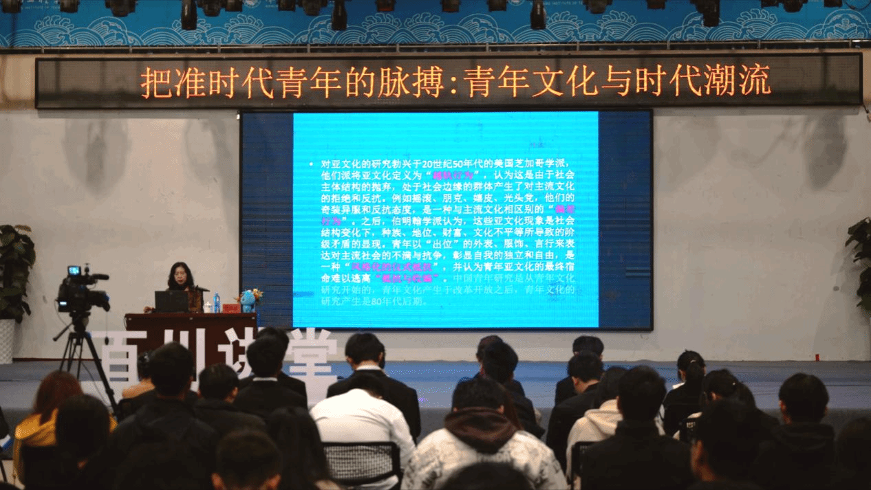活动中,曾燕波紧扣“青年文化与时代潮流”的中心,深入解析了青年文化与价值观、青年价值观发展趋势等现象。通过分析青年文化发展进程,曾燕波详细阐述了新一代青年的特点,激励青年们提前做好职业规划、积累专业知识、进行课外学习,从而提高综合竞争力。