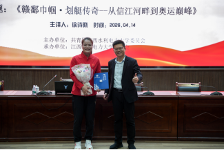 4月14日19时,我校第804期百川讲堂在大禹学术报告厅举行,全国人大代表、全国青联委员、省青联常委、两届奥运冠军徐诗晓应邀作题为《赣鄱巾帼·划艇传奇——从信江河畔到奥运巅峰》的专题分享。